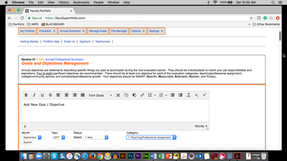 Faculty portfolio is a faculty friendly organizer and manual for evidence based yearly evaluations and promotion exhibits. No longer will you have to pass on your vital information in a binder which took you extensive time to prepare.